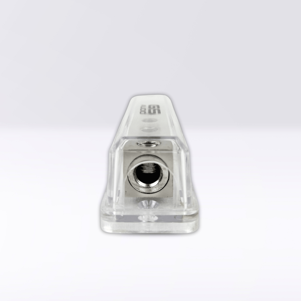 5-Way Power Distribution Block GS Audio | IN/OUT: 2x50 3x25Connections: up to 5 connections divided into 2 input or output connections 50mmq and 3 input or output connections 35mmq5-way power distribution block, ideal for car hi-fi audio systems. Built with durable materials and plated contacts, ensures stable conduction over time. Design with deep housings protects connections, while oversized screws ensure secure tightening even in harsh conditions. Reliable, practical and designed for professional installations. Key features:Type: 5-way power distribution blockCable compatibility: up to a maximum cross-section of 50 mm²Resistant to high temperaturesCover: shockproof clear plexiglass protective cover with engraved GS Audio logoMounting holes: prepared for secure mounting on panels or structuresUsage: Secure distribution for audio and vehicular electrical systemsApplications:Car audio systems (car hi-fi)Electrical systems on motor homes (RVs)ATV and off-road vehiclesNautical electrical systems (boats and boats)Safe power distribution to amplifiers and auxiliary devicesSystem protection from overloads and unstable connections