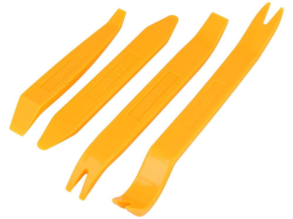 Uppsättning av verktyg eller demontering packningar, aluminiumprofiler, cockpit, dörrvakter etc. i bilar. Gjorda av hållbart material, som till skillnad från metallverktyg, inte orsakar skador på ytan.