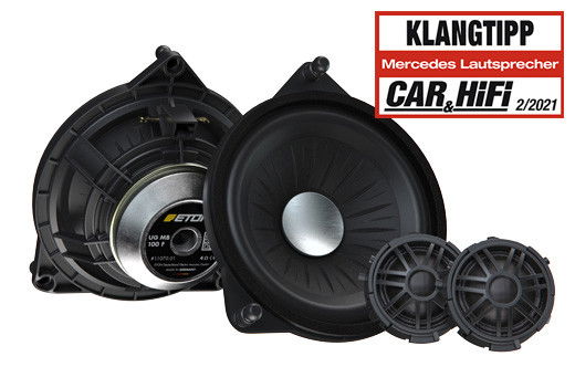 100 mm plug and play 2-vägs frontsystem bestående av speciellt koordinerade mellanregister med en glasfiberförstärkt polyamidkorg och 25 mm handbelagda diskanthögtalare i tyg med ventilerad kopplingsvolym, inklusive matchande höljesfilter. Lämplig för olika Mercedes-Benz modeller. Utveckling och produktion i Tyskland.