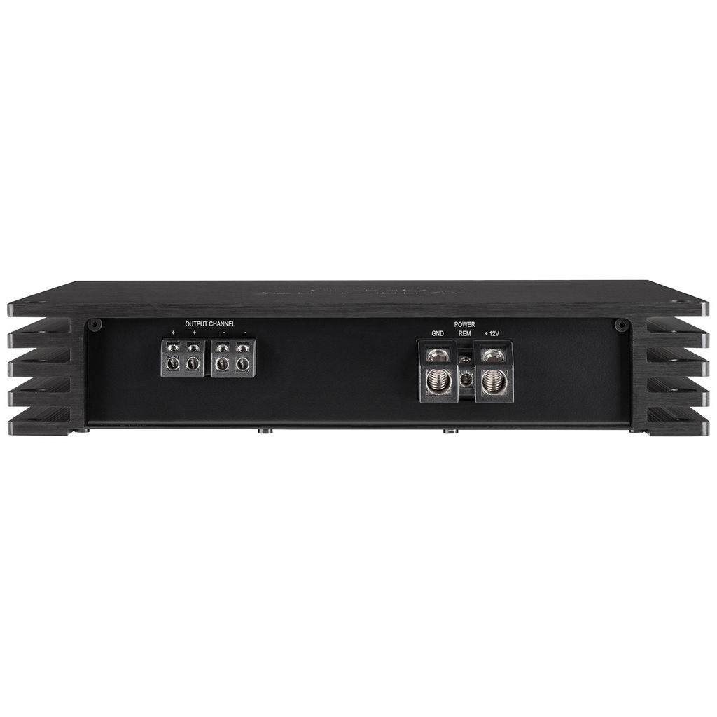 High performance Class D mono amplifier with up to 1,800 Watts RMS @ 1 Ohm – a perfect match for all 2 x 2 Ohms subwoofers connected in parallel