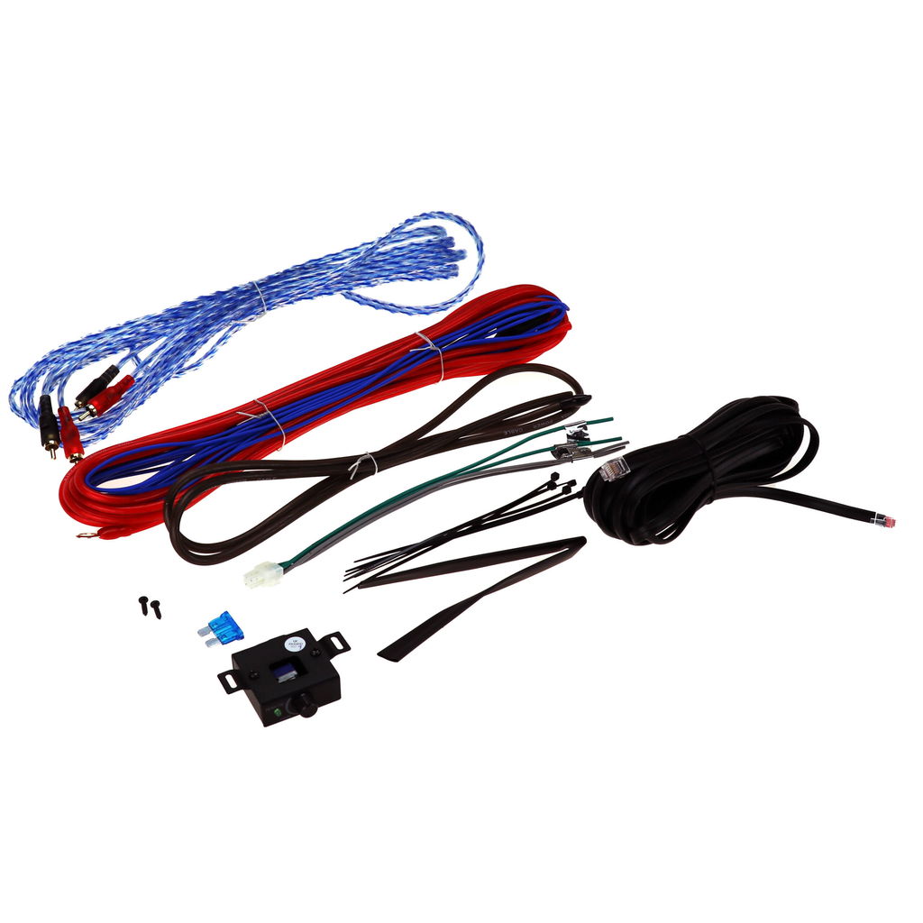 Everything you need for installation is included in the box. The included wiring kit comes with a 5-meter power wire, 1.2-meter ground wire, 5-meter RCA wire, and 5-meter remote wire. For added convenience, the power and ground wires are pre-installed with cable lugs and a fuse, making setup quick and simple.